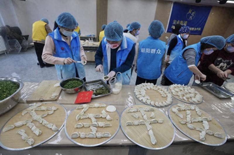 上午九时许,党群服务中心活动室内,来自工会和社区的志愿者们已经忙碌起来,大家和面、调馅、擀皮、捏口,动作娴熟,配合默契。新就业群体的志愿者代表们也陆续来到现场参与其中。在大家的共同努力下,不一会儿,一个个饱满精巧的饺子便整整齐齐地码放在盘子里。
